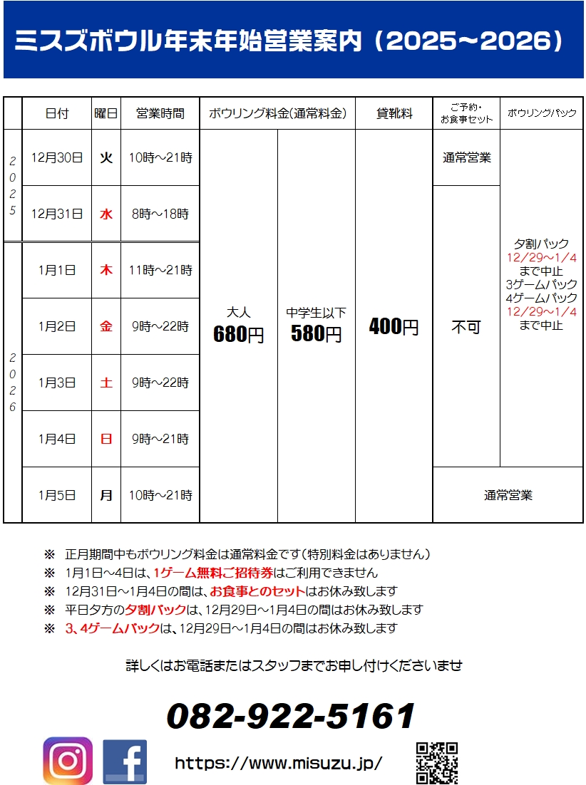 860円(3ゲーム目からは1ゲーム280円) 平日15:30~19:00 お正月、お盆、GWなど祝日、弊社祝日扱い日は中止といたします。 |