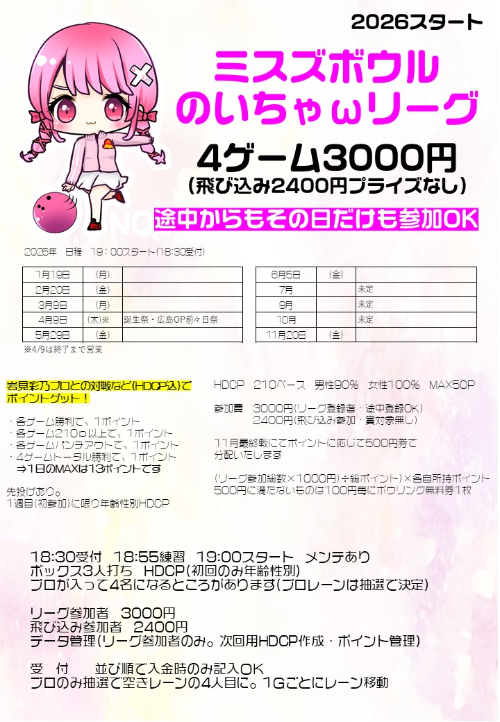 2026年から岩見彩乃プロのリーグをスタートしています!